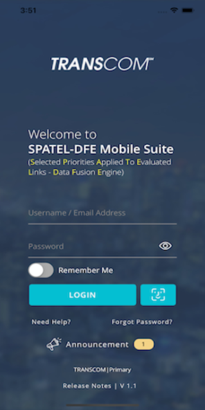Mobile Suite memungkinkan pengguna, dengan kredensial yang sesuai untuk masuk dan menggunakan empat alat yang paling banyak digunakan dalam rangkaian layanan transkom.